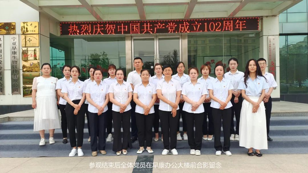 早康枸杞黨支部書記林樺和行政部主任蔣文婷帶領(lǐng)全體黨員參觀展廳